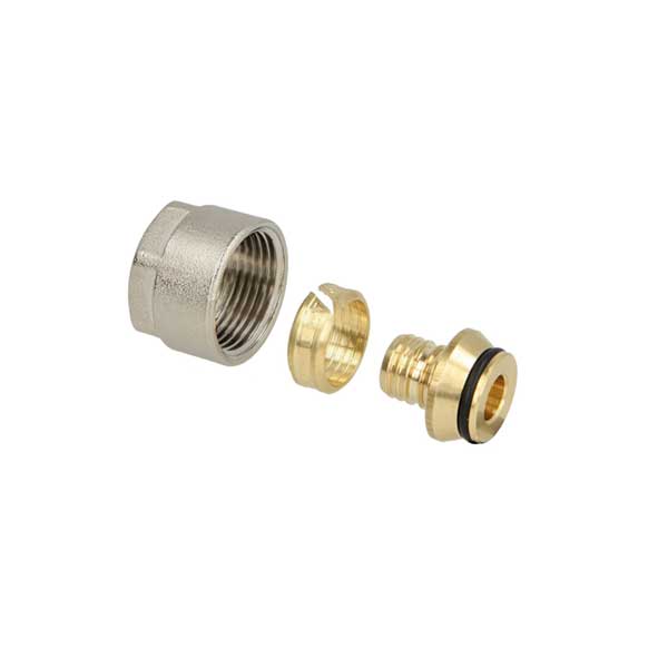 EuroConus 18×2,0 koppelingen voor PE-RT leidingen. Voor het aansluiten van vloerverwarmingsverdelers