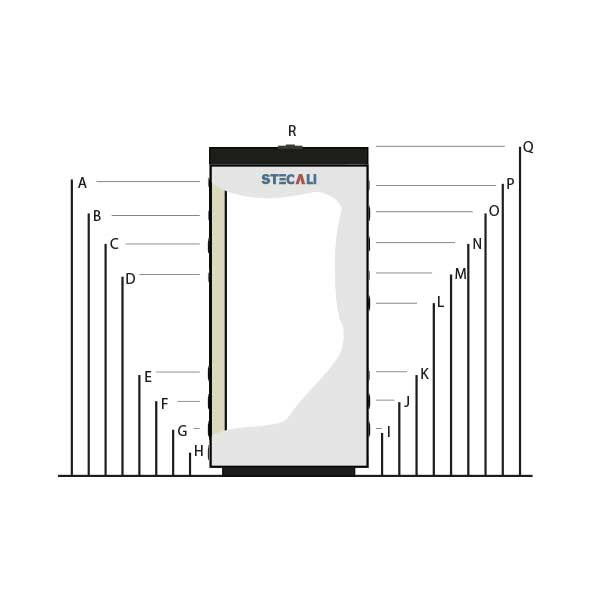 De STECALI XL 800L RVS opslagvaten zijn speciaal ontwikkeld voor toepassingen met o.a. warmtepompen. Door de grote volume inhoud zijn deze opslagvaten uitstekend toepasbaar als buffervat of voor opslag van grote hoeveelheden (warm)tapwater. De vaten zijn uitgevoerd met een hoogwaardige RVS Duplex binnen tank en een gegalvaniseerd stalen buitenschil (wit). Door de zeer efficiënte isolatie is het warmteverlies minimaal (A-Label).