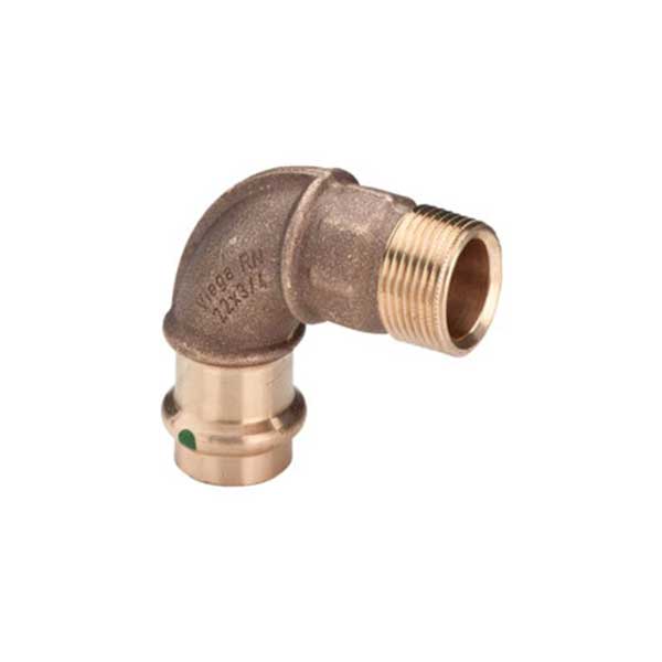 | Omschrijving | Bochtkoppeling 90gr. Sanpress brons press 22x3/4"bt Viega |